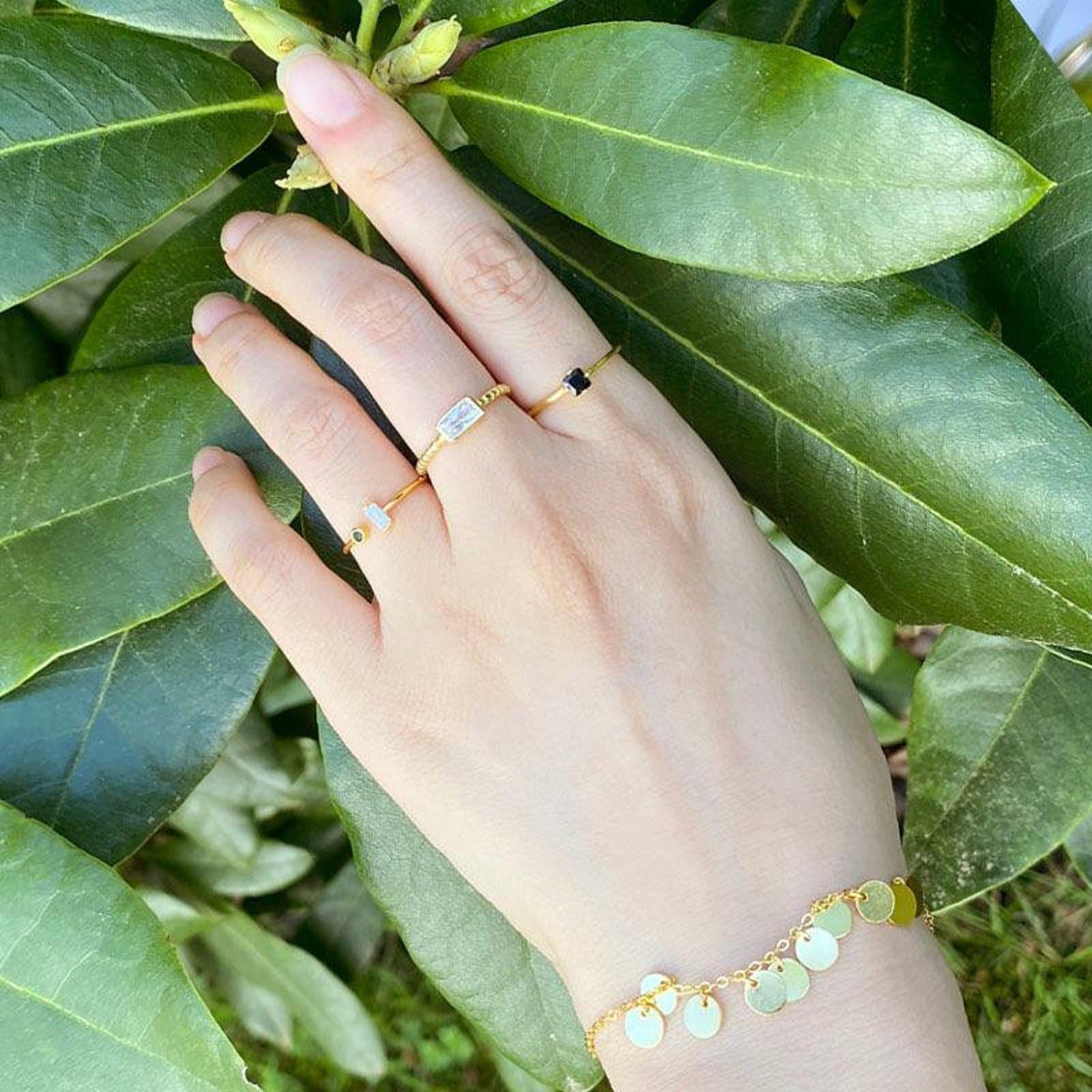 Be the first to review “Dainty Baguette & Round CZ Open Ring, Tiny Black White CZ Ring, Open Gemstone Ring, Adjustable Ring, Small Crystal Cuff Ring, Stacking Ring”